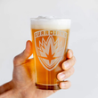 Our durable, temper-rimmed, 16 oz pint glasses are heavy duty, high quality, and dishwasher safe. Each glass is intricately laser engraved, then carefully washed and deburred, ensuring that your design never chips, fades, washes off, or wears away with time and use.