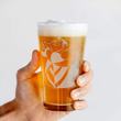 Our durable, temper-rimmed, 16 oz pint glasses are heavy duty, high quality, and dishwasher safe. Each glass is intricately laser engraved, then carefully washed and deburred, ensuring that your design never chips, fades, washes off, or wears away with time and use.