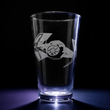 Our durable, temper-rimmed, 16 oz pint glasses are heavy duty, high quality, and dishwasher safe. Each glass is intricately laser engraved, then carefully washed and deburred, ensuring that your design never chips, fades, washes off, or wears away with time and use.